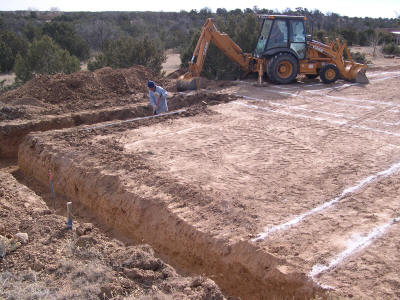 Sitework: layout; 36" wide footings; footing steelwork