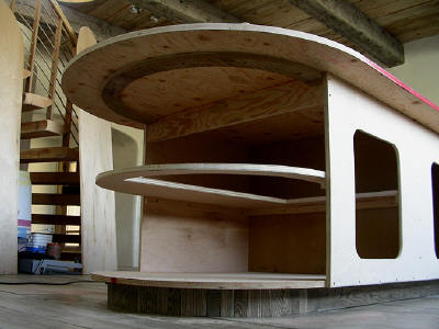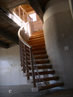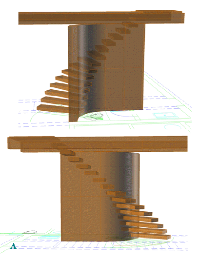A. Studio stair 3d model: quick study done within Autocad 2002 drawing file, when I decided to throw a curve into the stair, and to cantilever the
