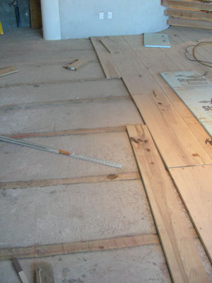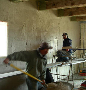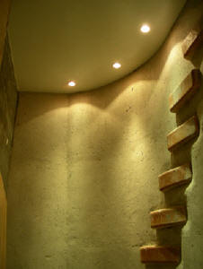 stair interior, powder room; studio scratch coat, plaster; solid ash floor; studio roof woodwork