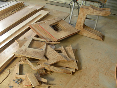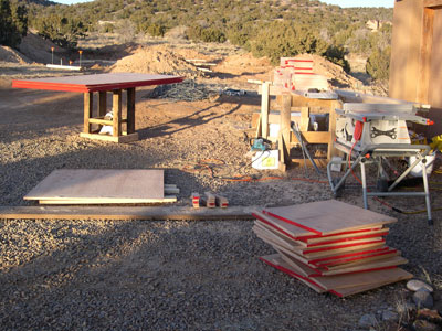 form ply for ARXX ICF forms (4th July '07 party); same pieces become the shop electrical chase; the barn bases become the form for a studio banco