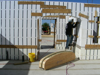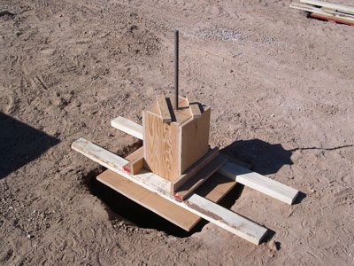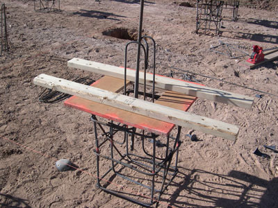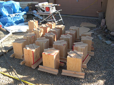 monuments and bases (top removes for pour); the result; form ply used for defining and stiffening arch form
